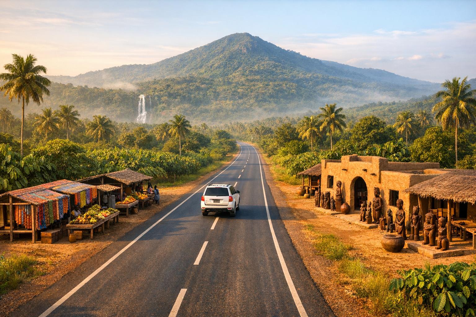Ce parcours révèle les trésors naturels et humains du Togo, entre montagnes, cascades et marchés animés.